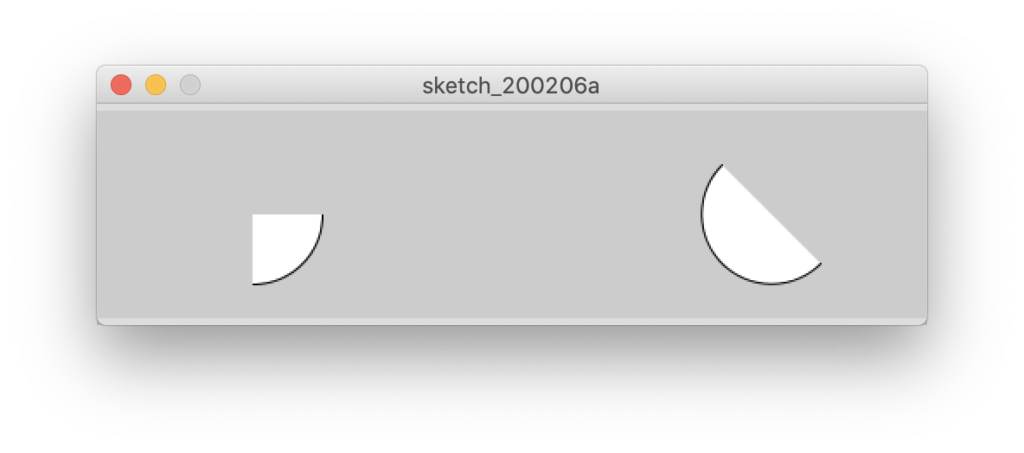 arc() 関数を使って円の一部を描きます。